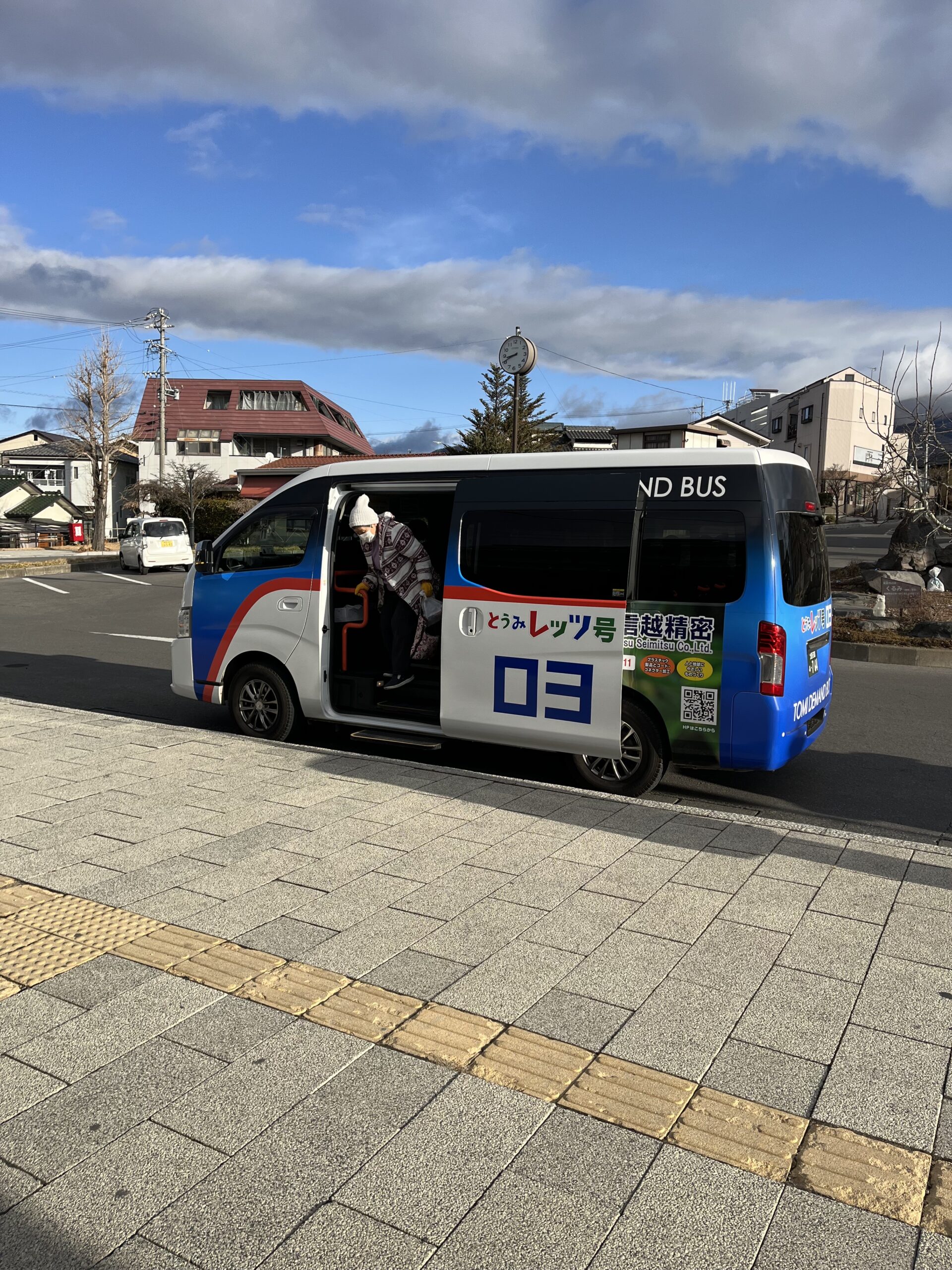 とうみレッツ号…東御市民なら誰でも利用できる市内を走る乗り合いタクシー。1回300円で乗車できる。